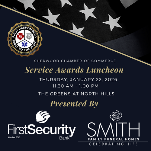 The Sherwood Chamber of Commerce is proud to host the Annual First Responders Service Awards Luncheon, a heartfelt event dedicated to celebrating the outstanding service and dedication of our local first responders. This cherished tradition brings our community together to honor the brave men and women from the Sherwood Fire Department, Police Department, and MEMS who work tirelessly to keep us safe every day.