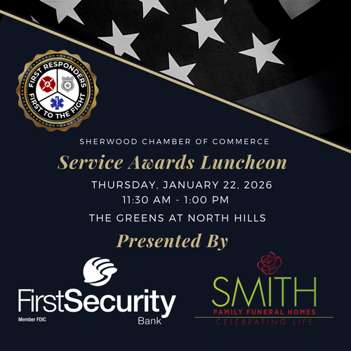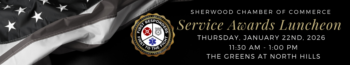The Sherwood Chamber of Commerce is proud to host the Annual First Responders Service Awards Luncheon, a heartfelt event dedicated to celebrating the outstanding service and dedication of our local first responders. This cherished tradition brings our community together to honor the brave men and women from the Sherwood Fire Department, Police Department, and MEMS who work tirelessly to keep us safe every day.